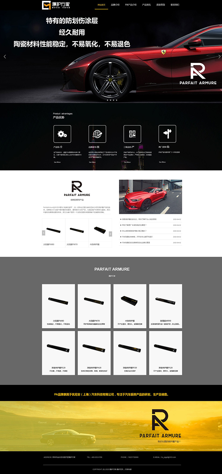 PA品牌隶属于优尼安(上海)汽车科技有限公司,专注于汽车膜类产品的研发、生产及销售。与世界五百强圣戈班集团和LG集团签署战略合作,推出全新系列产品,让客户能够体验到更好、性价比更高的保护膜产品。