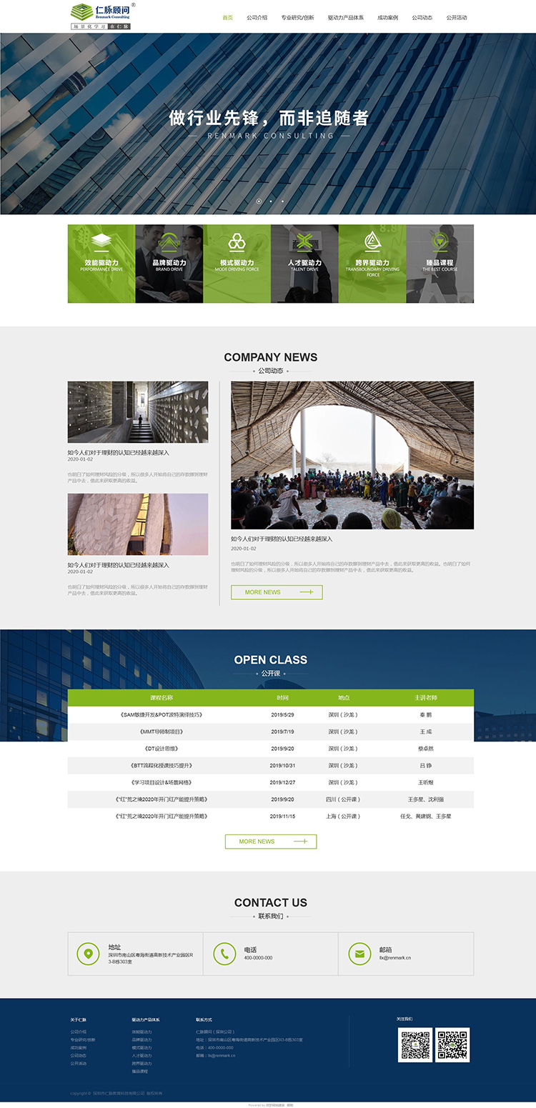 H5响应式企业网站定制,自适应电脑、平板、手机、微信,整个网站规划了首页、公司介绍、专业研究、产品体系、成功案例、公司动态、公开活动等栏目页面,后期也可以通过后台进行编辑修改、新增页面,涵盖企业官网建设标准功能服务,适合于企业咨询、教育培训等行业网站建设。