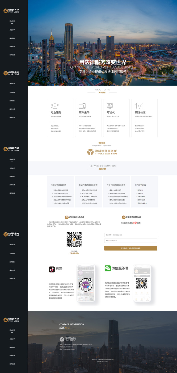 H5响应式企业网站定制,自适应电脑、平板、手机、微信,整个网站规划了首页、关于我们、服务团队、服务产品、服务优势、联系我们等栏目页面,后期也可以通过后台进行编辑修改、新增页面,涵盖企业官网建设标准功能服务,适合于法律、律师等行业网站建设。